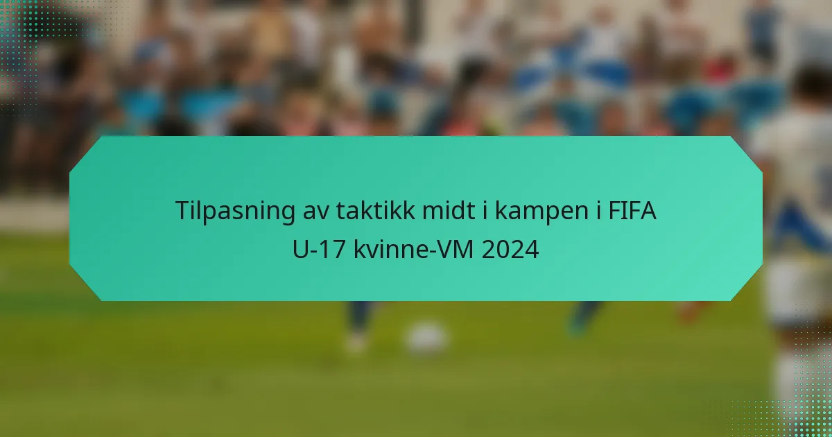 I FIFA U-17 kvinne-VM 2024 viser lagene sin evne til å tilpasse taktikk midt i kampen, ved å bruke strategiske justeringer av formasjoner og spillerbytter. Trenere benytter sanntidsdataanalyse og effektiv kommunikasjon for å respondere på de utviklende dynamikkene i spillet, noe som gjør dem i stand til å utnytte motstandernes svakheter og forbedre sine egne defensive strategier. Denne tilpasningsevnen har vist seg å være avgjørende for å forbedre ytelsen og oppnå gunstige resultater i høytrykk-kamper.