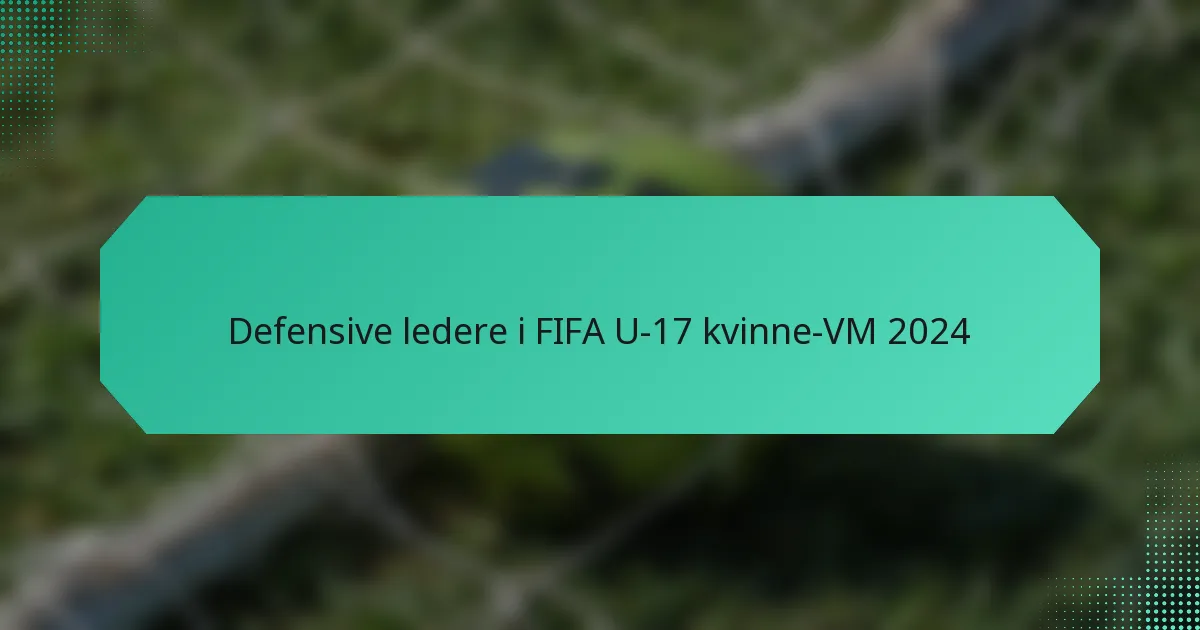 FIFA U-17 Verdensmesterskapet for kvinner 2024 fremhever viktigheten av topp defensive spillere som er avgjørende for sine lag sin suksess. Disse forsvarerne viser eksepsjonelle ferdigheter og strategier, og påvirker lagets samlede effektivitet gjennom nøkkelstatistikker som taklinger, avskjæringer og klareringer. Deres prestasjoner reflekterer ikke bare individuell talent, men former også lagdynamikk og kampresultater.