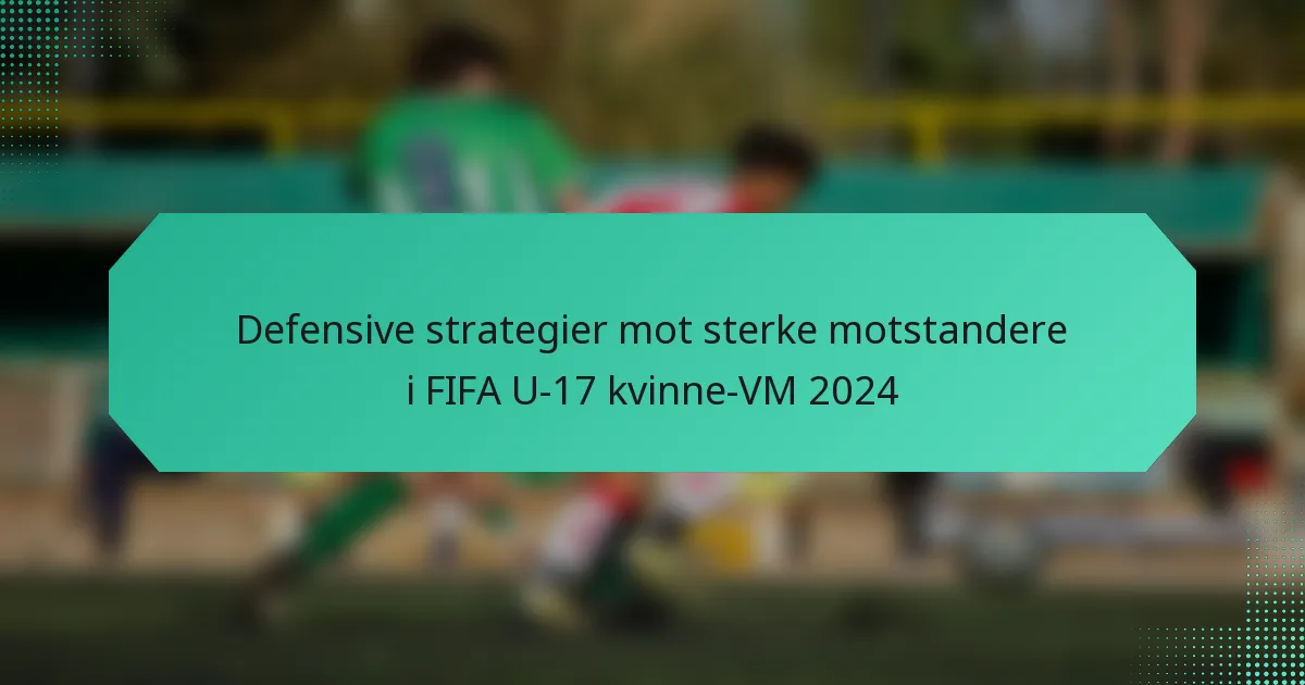 I FIFA U-17 kvinne-VM 2024 er effektive defensive strategier avgjørende for lag som møter sterke motstandere. Ved å fokusere på formasjoner, spillerposisjonering og kommunikasjon kan lag tilpasse taktikken sin for å motvirke rivalenes styrker, samtidig som de bruker presseteknikker for å gjenvinne ballen. Valget av formasjon spiller en viktig rolle i å forbedre et lags defensive evner, og sikrer at de opprettholder struktur og effektivt responderer på angrepstrusler.