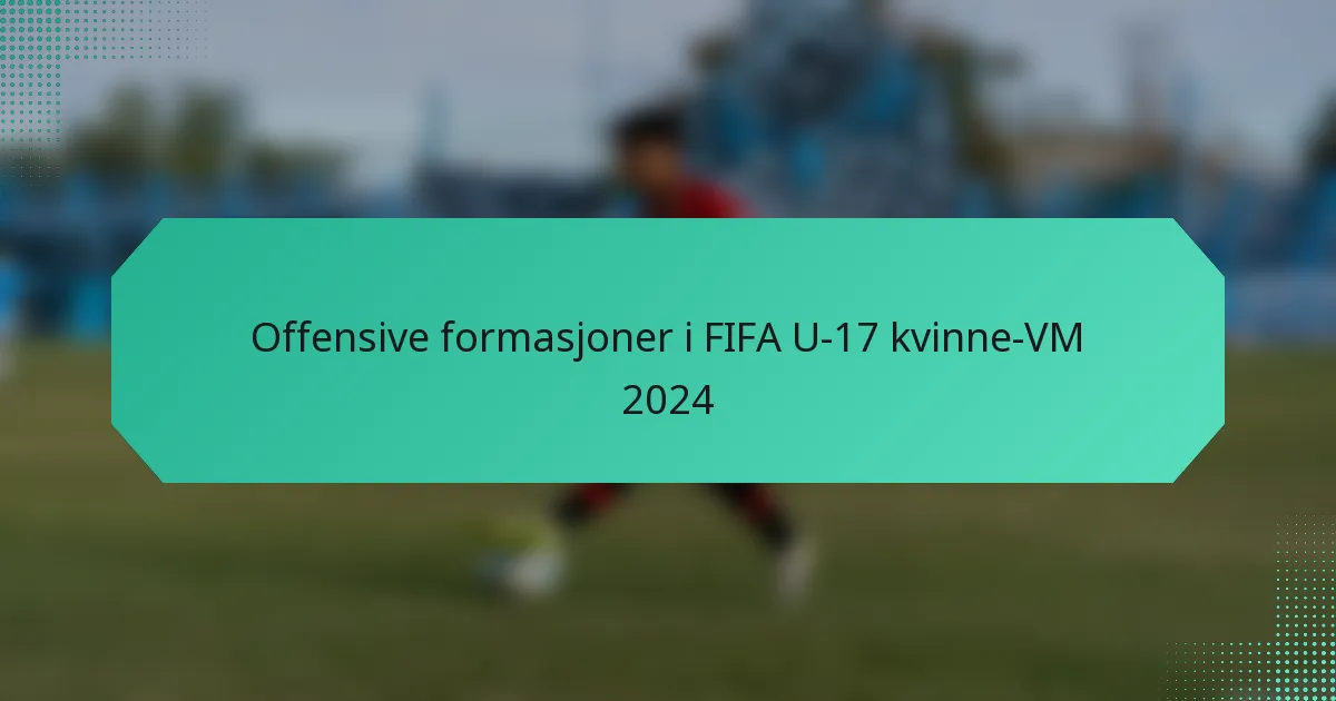 FIFA U-17 kvinne-VM 2024 fremhever den strategiske betydningen av offensive formasjoner i utformingen av lagprestasjoner og scoringspotensial. Lagene benytter ulike formasjoner som 4-3-3, 4-2-3-1, 3-5-2 og 5-3-2, hver designet for å optimalisere deres angrepsspill og tilpasse seg forskjellige motstandere. Disse taktiske valgene påvirker betydelig hvordan lagene skaper og konverterer scoringsmuligheter gjennom turneringen.