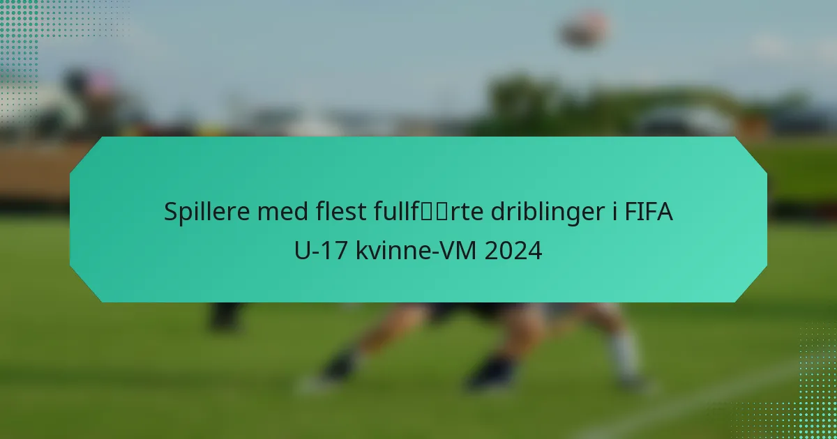 FIFA U-17 verdensmesterskap for kvinner 2024 viste eksepsjonelt talent, med flere spillere som utmerket seg for sine dribleferdigheter. De beste driblerne viste imponerende suksessrater og bidro betydelig til lagets prestasjoner gjennom turneringen.